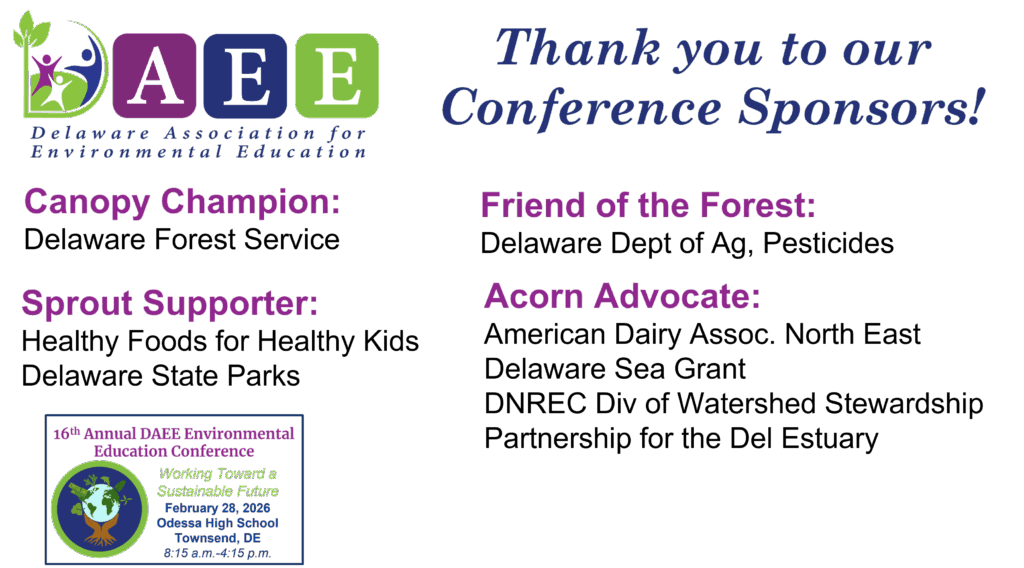 A great way to support DAEE, support our Annual Conference, support environmental literacy, support continuing education for our teaching professionals, AND support getting communities outside is to become a DAEE sponsor.